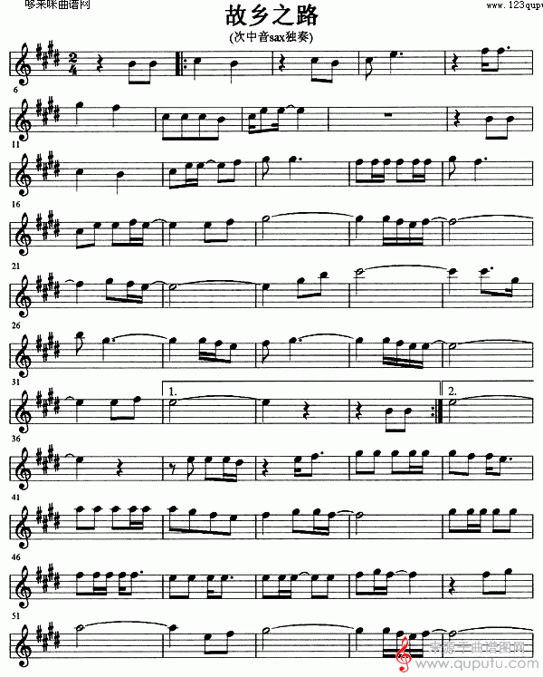 曲谱图网为您提供故乡之路(故乡之路萨克斯曲演奏五线谱)找谱子,就上曲谱图网。