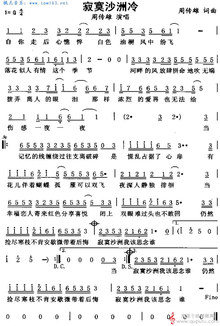 寂寞沙洲冷(寂寞沙洲冷萨克斯独奏五线谱)