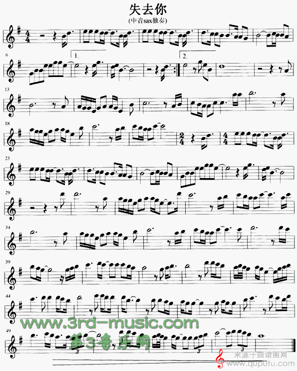 曲谱图网为您提供失去你(失去你萨克斯独奏曲谱)找谱子,就上曲谱图网。
