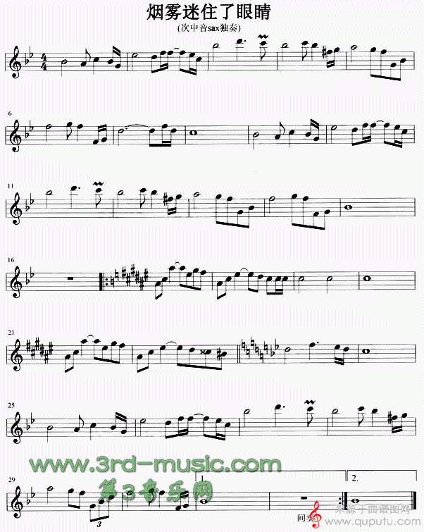 烟雾迷住了眼睛(萨克斯次中音伴奏五线谱)