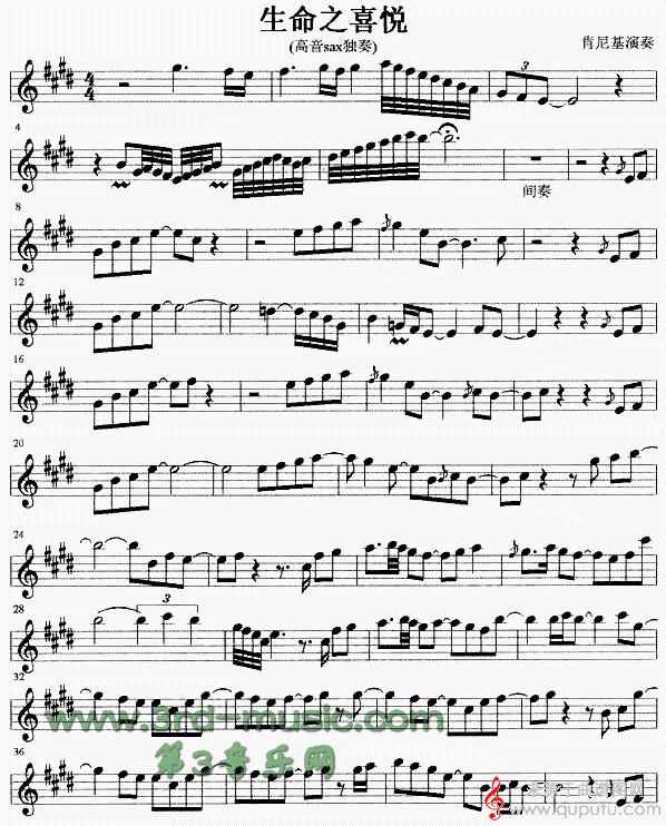 生命之喜悦(生命之喜悦萨克斯曲高音伴奏五线谱)