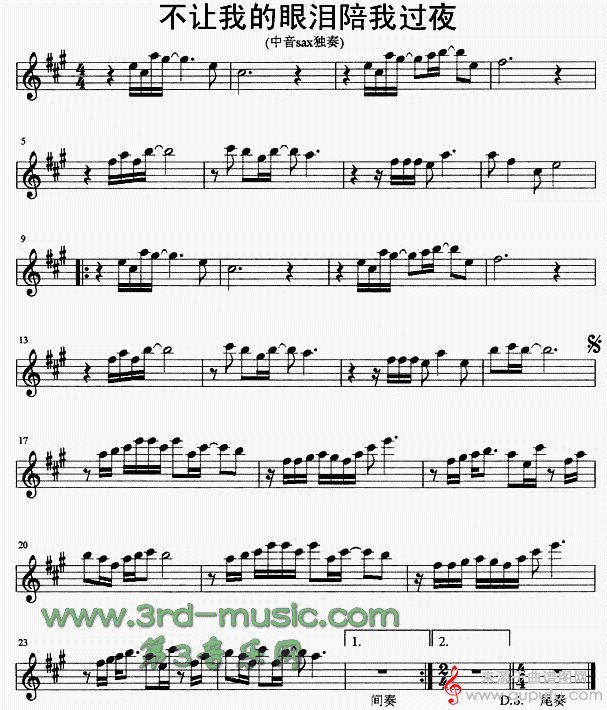 不让我的眼泪陪我过夜(萨克斯中音演奏独奏五线简谱)