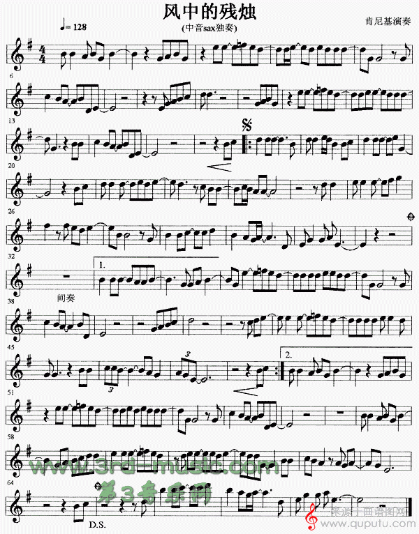 曲谱图网为您提供风中的残烛(风中的残烛萨克斯中音独奏曲谱)找谱子,就上曲谱图网。