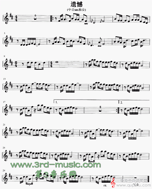 曲谱图网为您提供遗憾(遗憾中音萨克斯独奏曲谱)找谱子,就上曲谱图网。