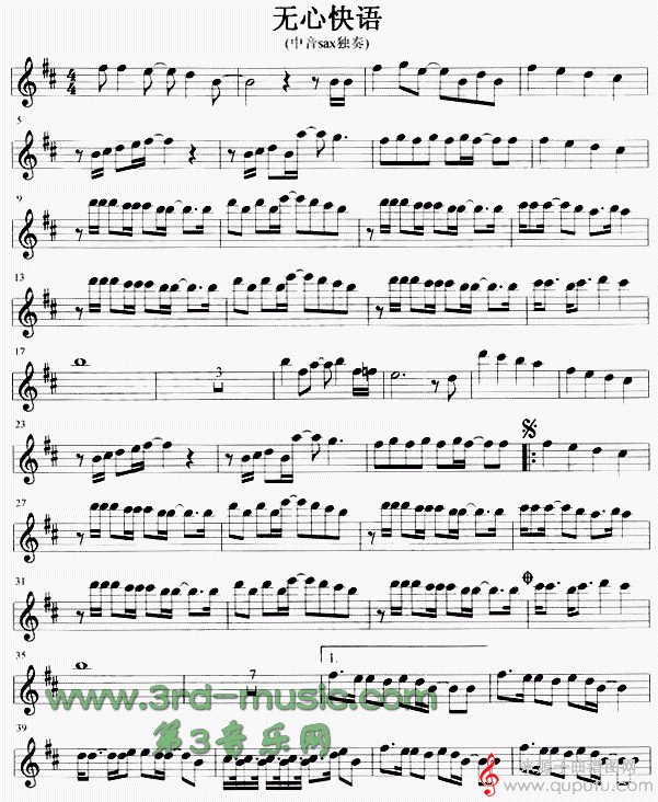 曲谱图网为您提供无心快语(萨克斯纯音乐伴奏五线演奏谱)找谱子,就上曲谱图网。