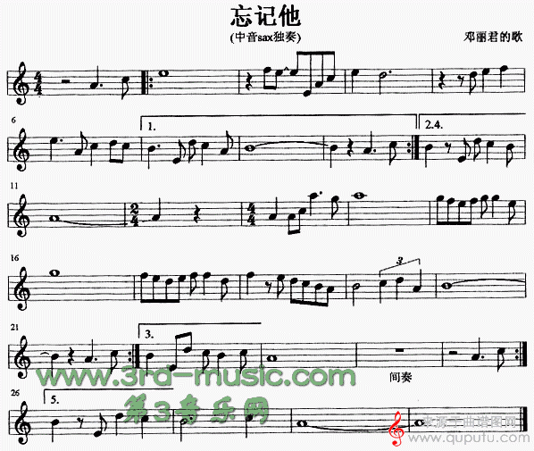 曲谱图网为您提供忘记他(忘记他中音萨克斯曲独奏伴奏演奏简谱)找谱子,就上曲谱图网。