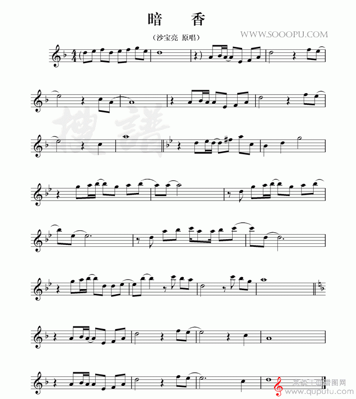 曲谱图网为您提供暗香(暗香萨克斯曲独奏伴奏五线谱)找谱子,就上曲谱图网。