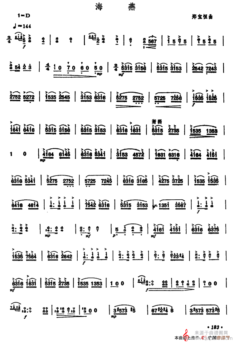 曲谱图网为您提供海燕(扬琴海燕曲谱之郑宝恒作曲版)找谱子,就上曲谱图网。