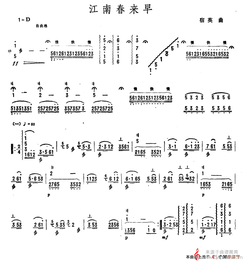 曲谱图网为您提供江南春来早(宿英作曲简谱完整版)找谱子,就上曲谱图网。