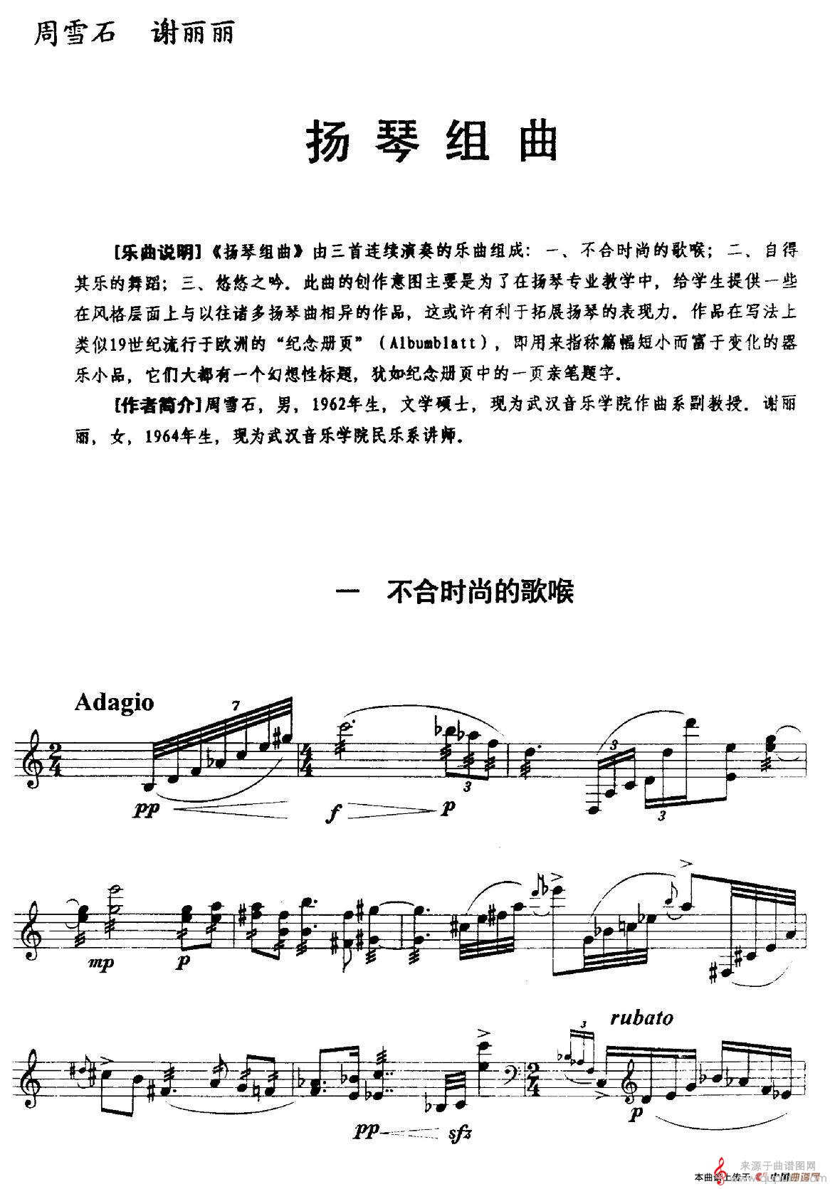 曲谱图网为您提供扬琴组曲(周雪石谢丽丽曲之不合时尚的歌喉)找谱子,就上曲谱图网。