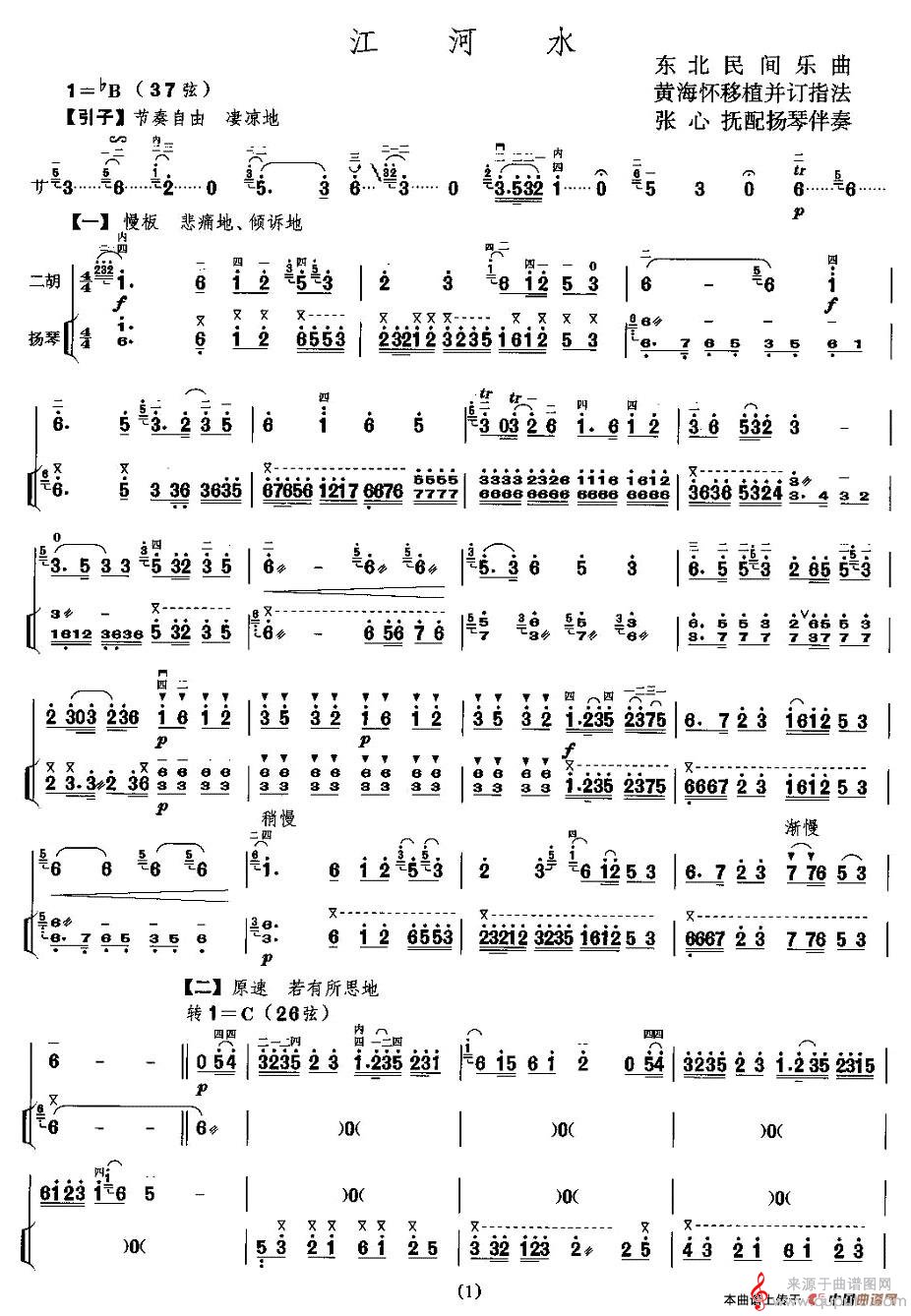 曲谱图网为您提供江河水(江河水扬琴伴奏独奏简谱)找谱子,就上曲谱图网。