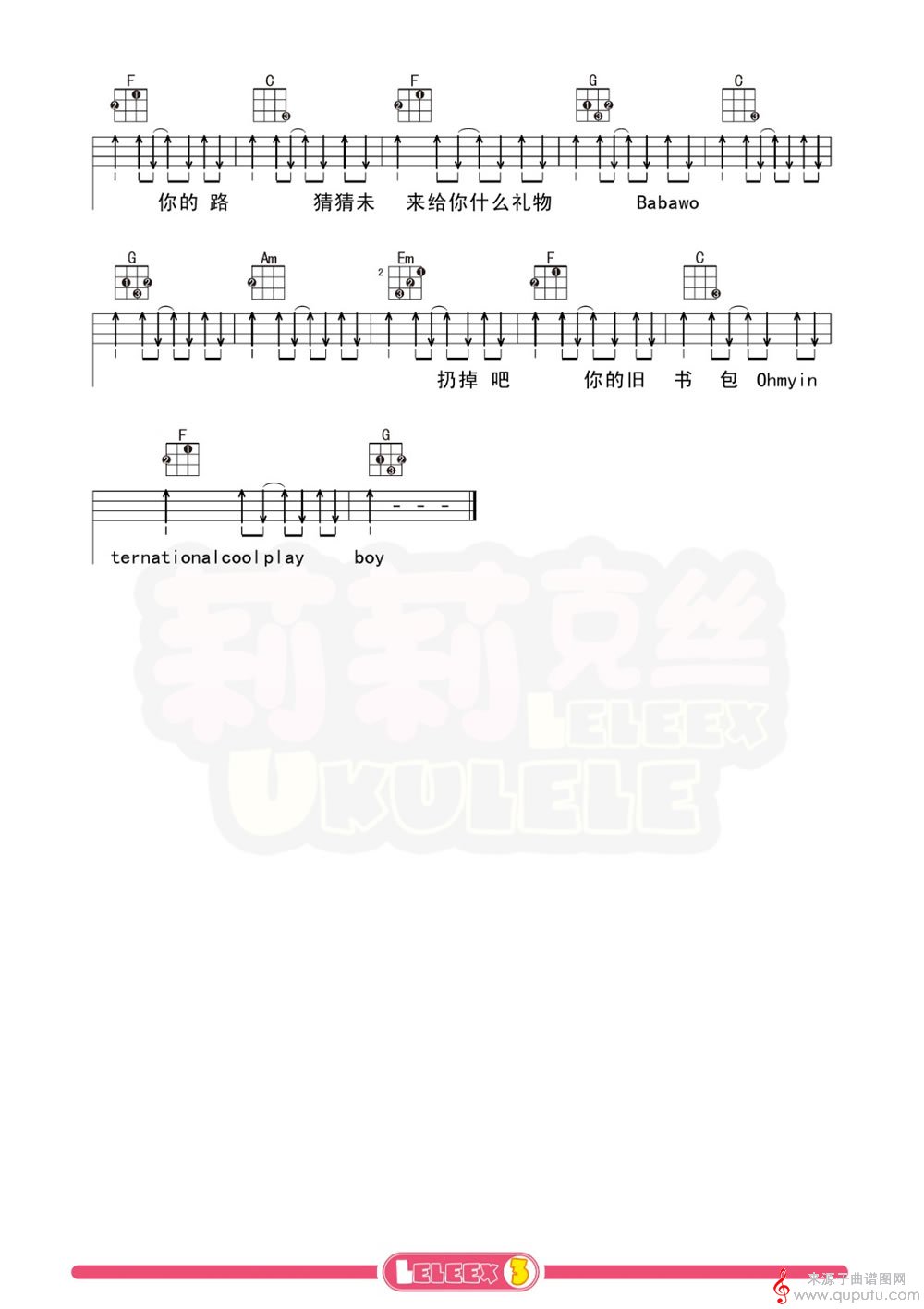 曲谱图网为您提供New boy(尤克里里弹唱教学和弦四线简谱)找谱子,就上曲谱图网。