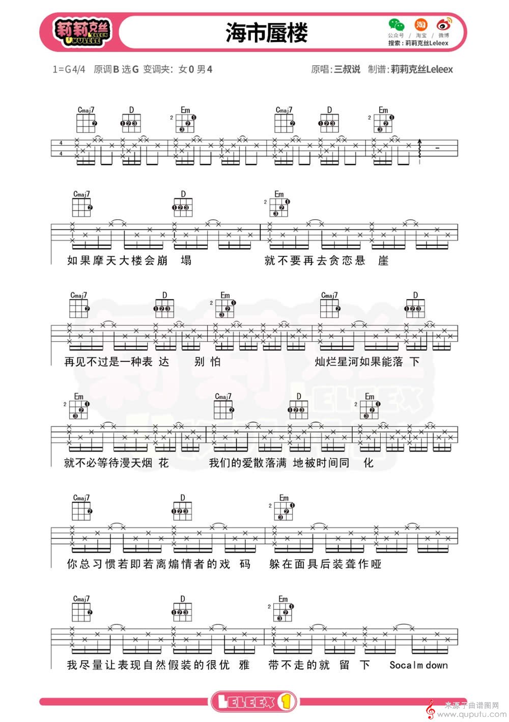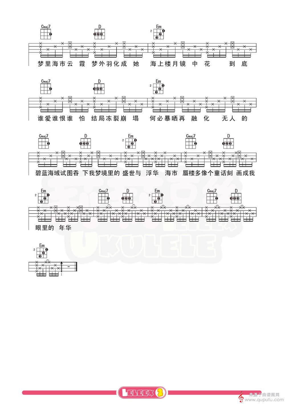 曲谱图网为您提供海市蜃楼(尤克里里弹唱教学四线谱)找谱子,就上曲谱图网。