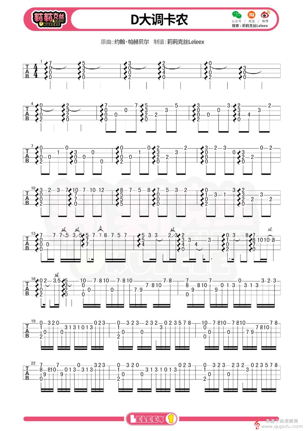 曲谱图网为您提供D大调卡农(尤克里里弹唱简谱进阶版)找谱子,就上曲谱图网。
