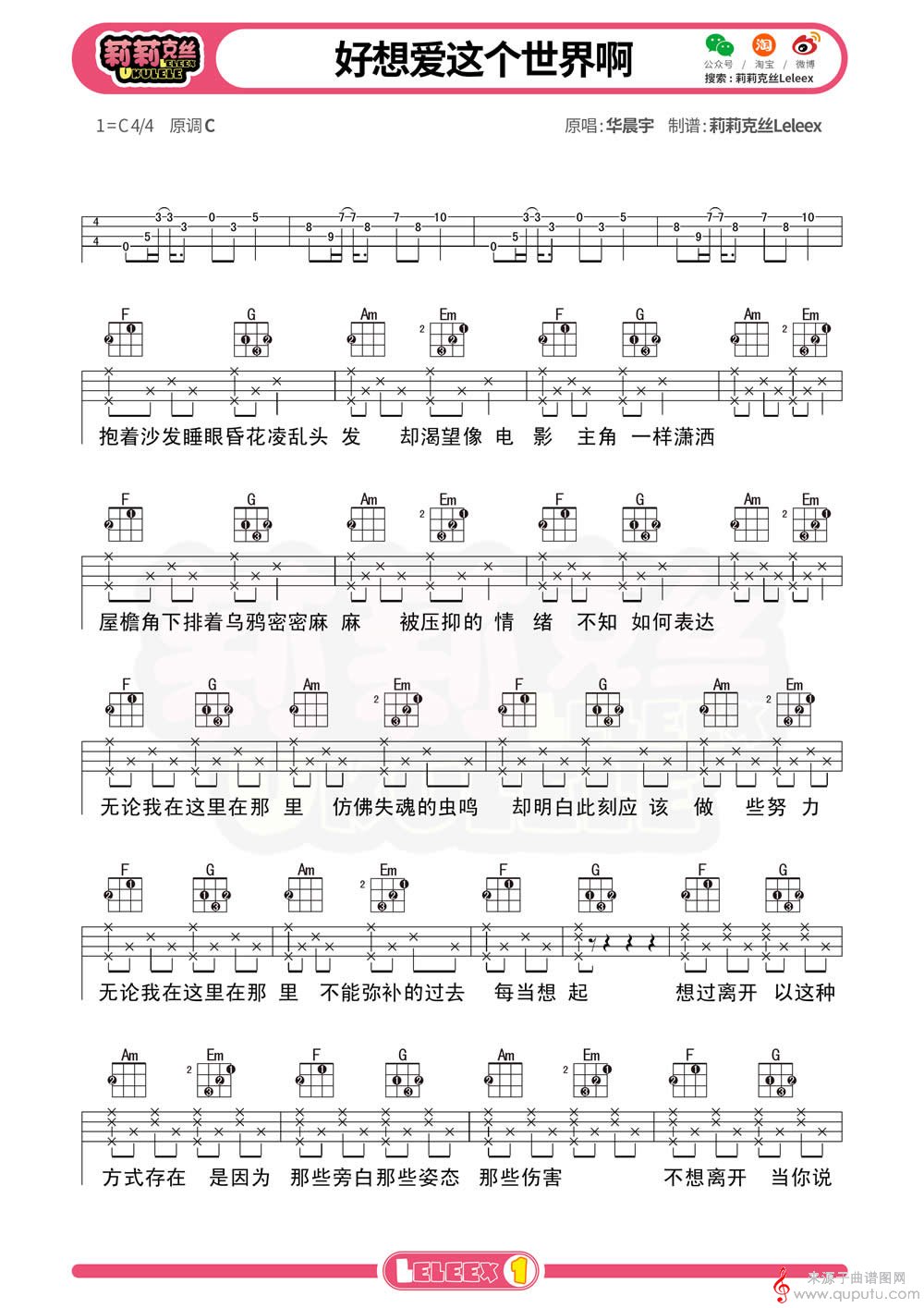 好想爱这个世界啊(尤克里里指弹弹唱教学四线简谱)好想爱这个世界啊(尤克里里指弹弹唱教学四线简谱)好想爱这个世界啊(尤克里里指弹弹唱教学四线简谱)