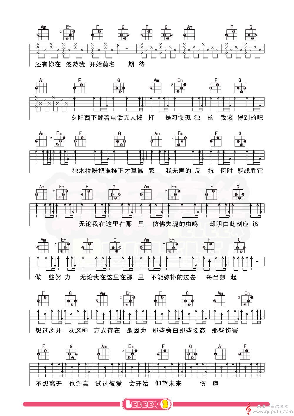 好想爱这个世界啊(尤克里里指弹弹唱教学四线简谱)