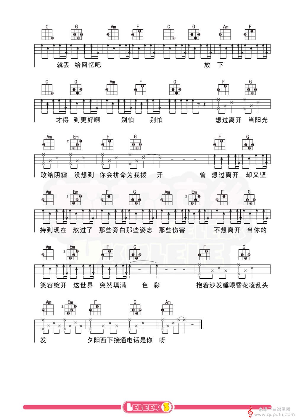 曲谱图网为您提供好想爱这个世界啊(尤克里里指弹弹唱教学四线简谱)找谱子,就上曲谱图网。