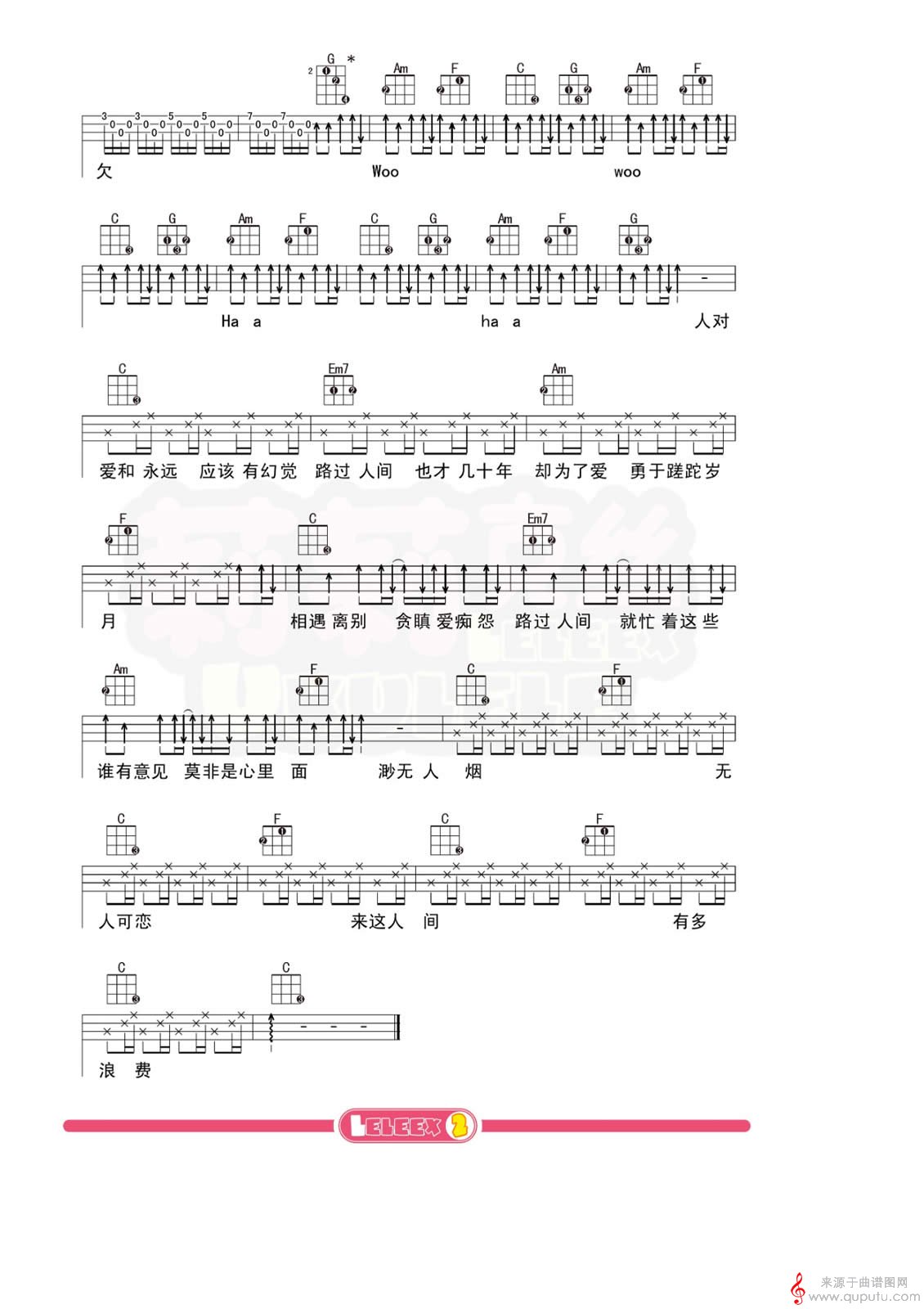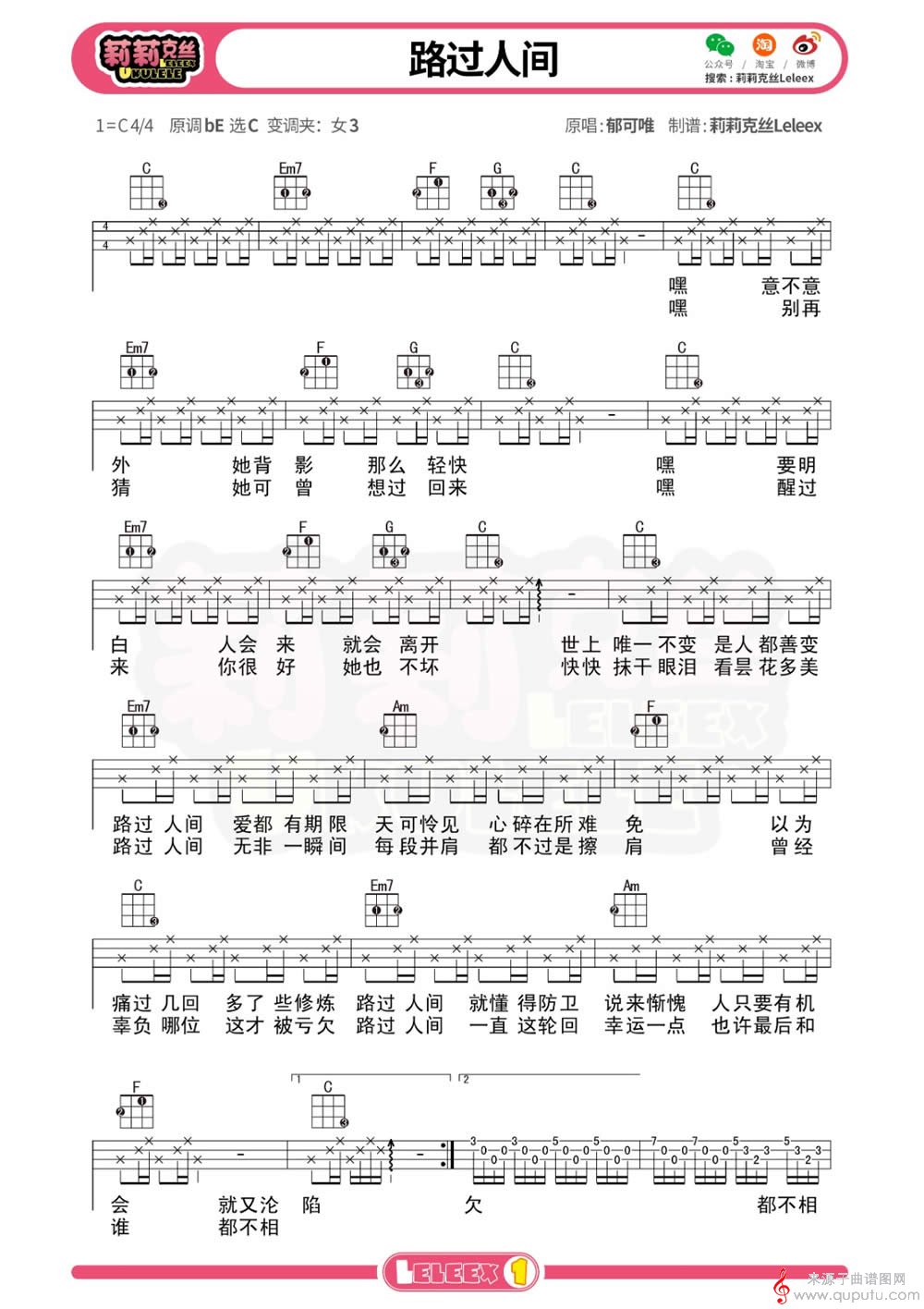 曲谱图网为您提供路过人间(尤克里里指弹弹唱教学四线简谱)找谱子,就上曲谱图网。