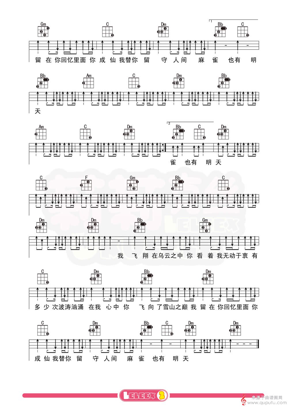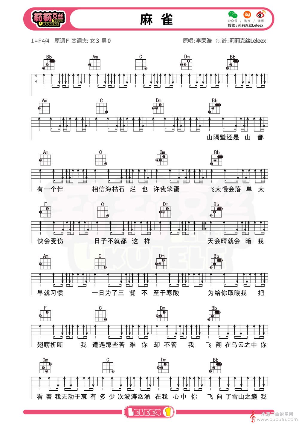 曲谱图网为您提供麻雀(麻雀尤克里里指弹弹唱教学四线简谱)找谱子,就上曲谱图网。