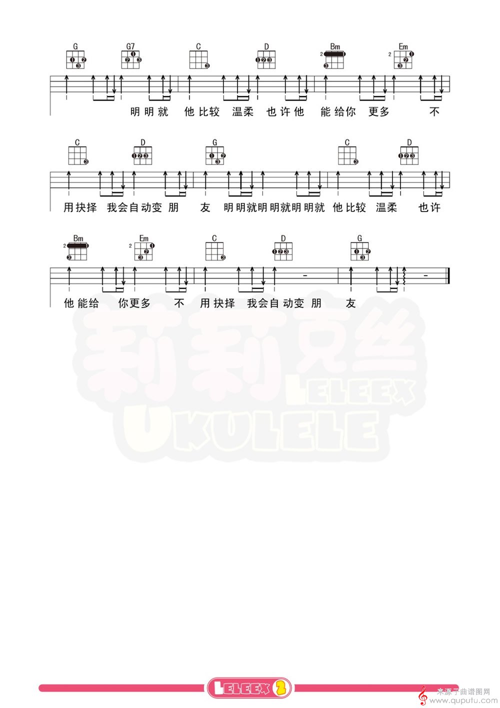 曲谱图网为您提供明明就(尤克里里弹唱教学四线谱)找谱子,就上曲谱图网。