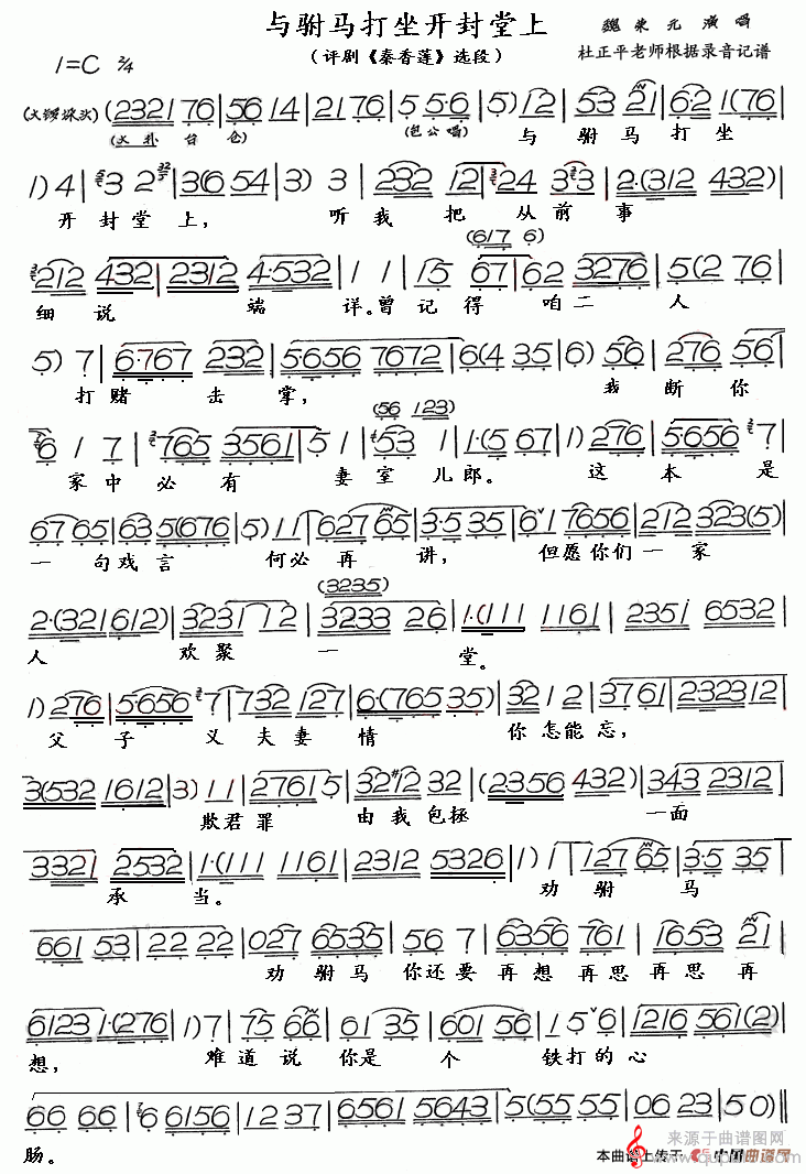曲谱图网为您提供与驸马打坐开封堂上(评剧《秦香莲》选段、青松改版)找谱子,就上曲谱图网。