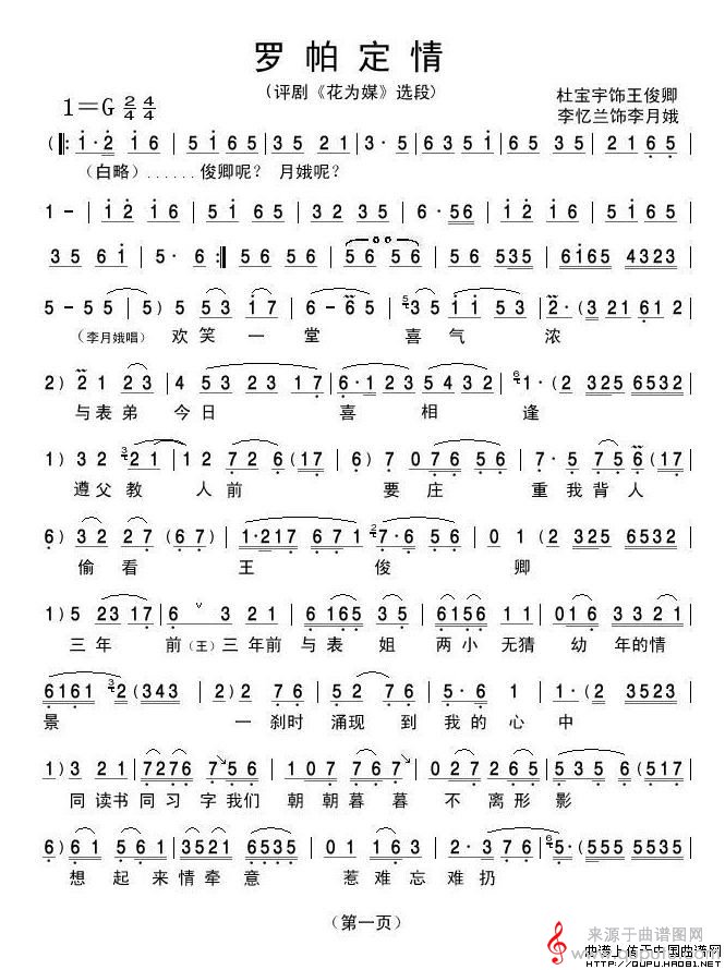 曲谱图网为您提供罗帕定情(《花为媒》选段)找谱子,就上曲谱图网。