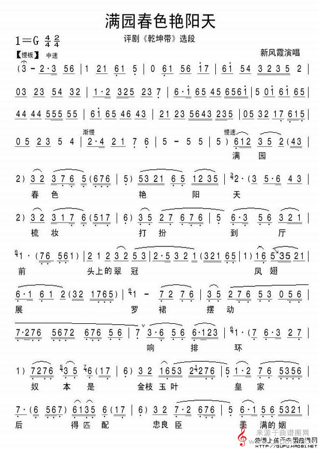 曲谱图网为您提供满园春色艳阳天(《乾坤带》选段)找谱子,就上曲谱图网。