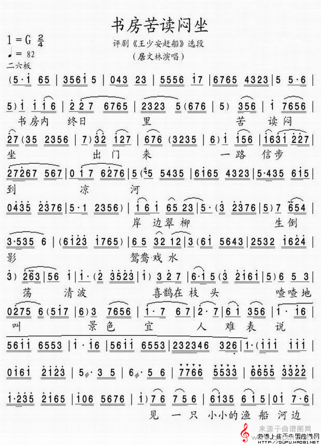 曲谱图网为您提供书房苦读闷坐(《王少安赶船》选段)找谱子,就上曲谱图网。