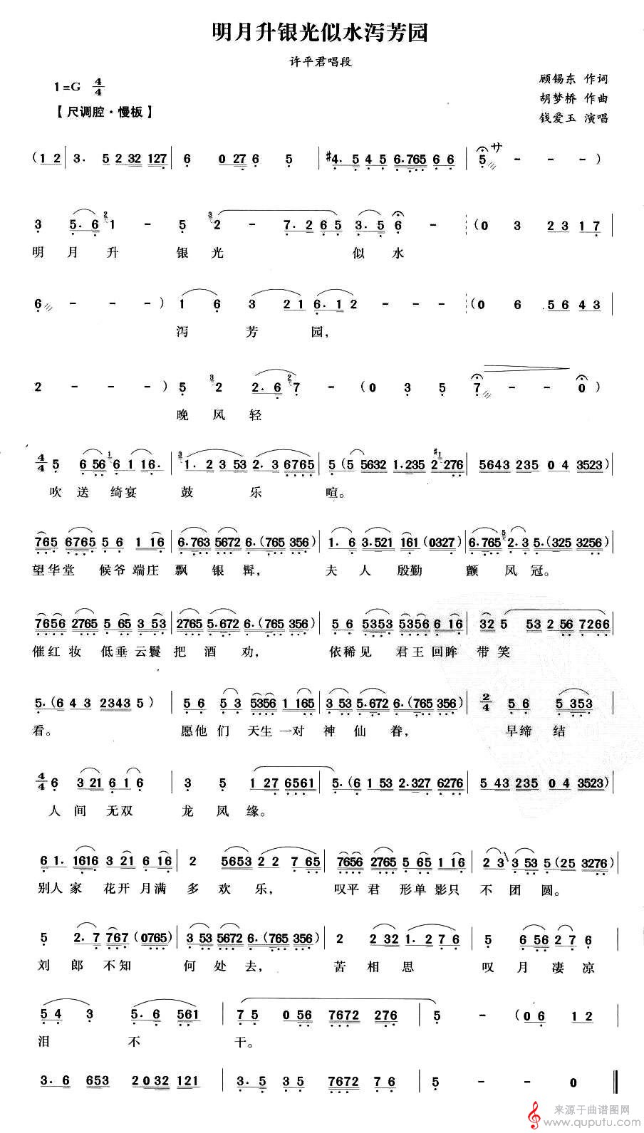 曲谱图网为您提供明月升银光似水泻芳园(摘选自越剧《汉宫怨》)找谱子,就上曲谱图网。