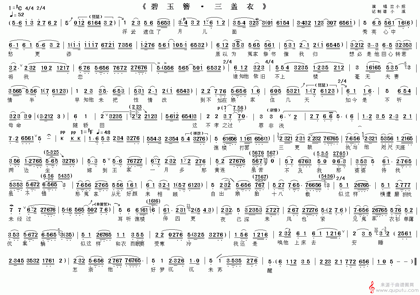 曲谱图网为您提供三盖衣(选自《碧玉簪》唱段)找谱子,就上曲谱图网。
