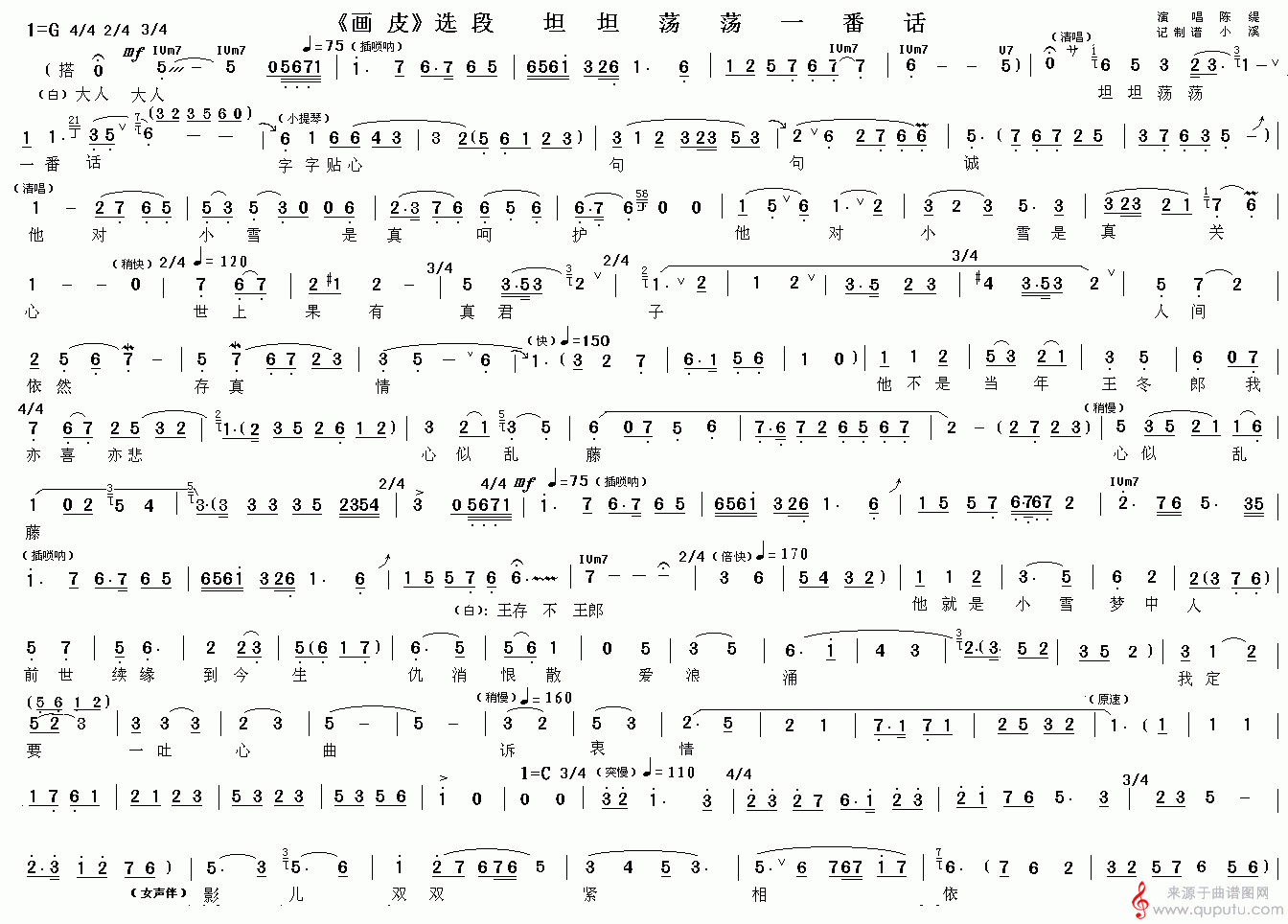 曲谱图网为您提供坦坦荡荡一番话/明双眸 皓玉齿(摘选自《画皮》唱段)找谱子,就上曲谱图网。