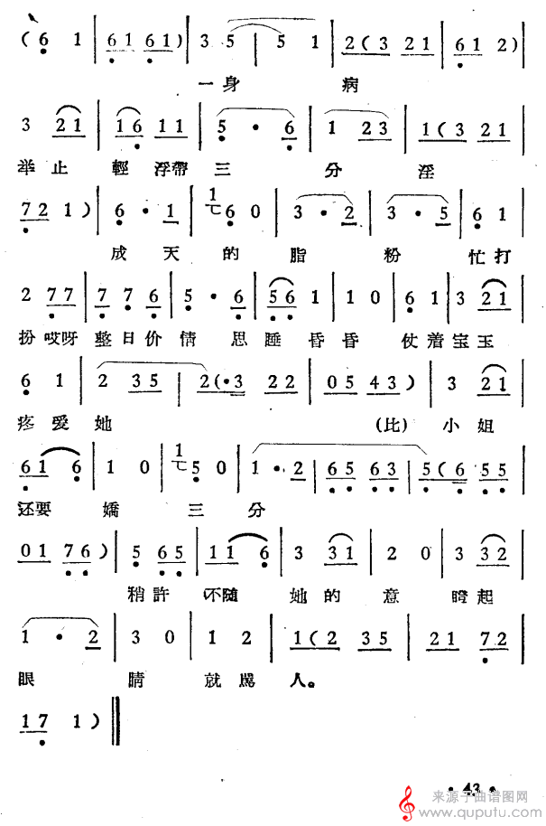 曲谱图网为您提供晴雯之死(《越剧曲调新编》选段)找谱子,就上曲谱图网。